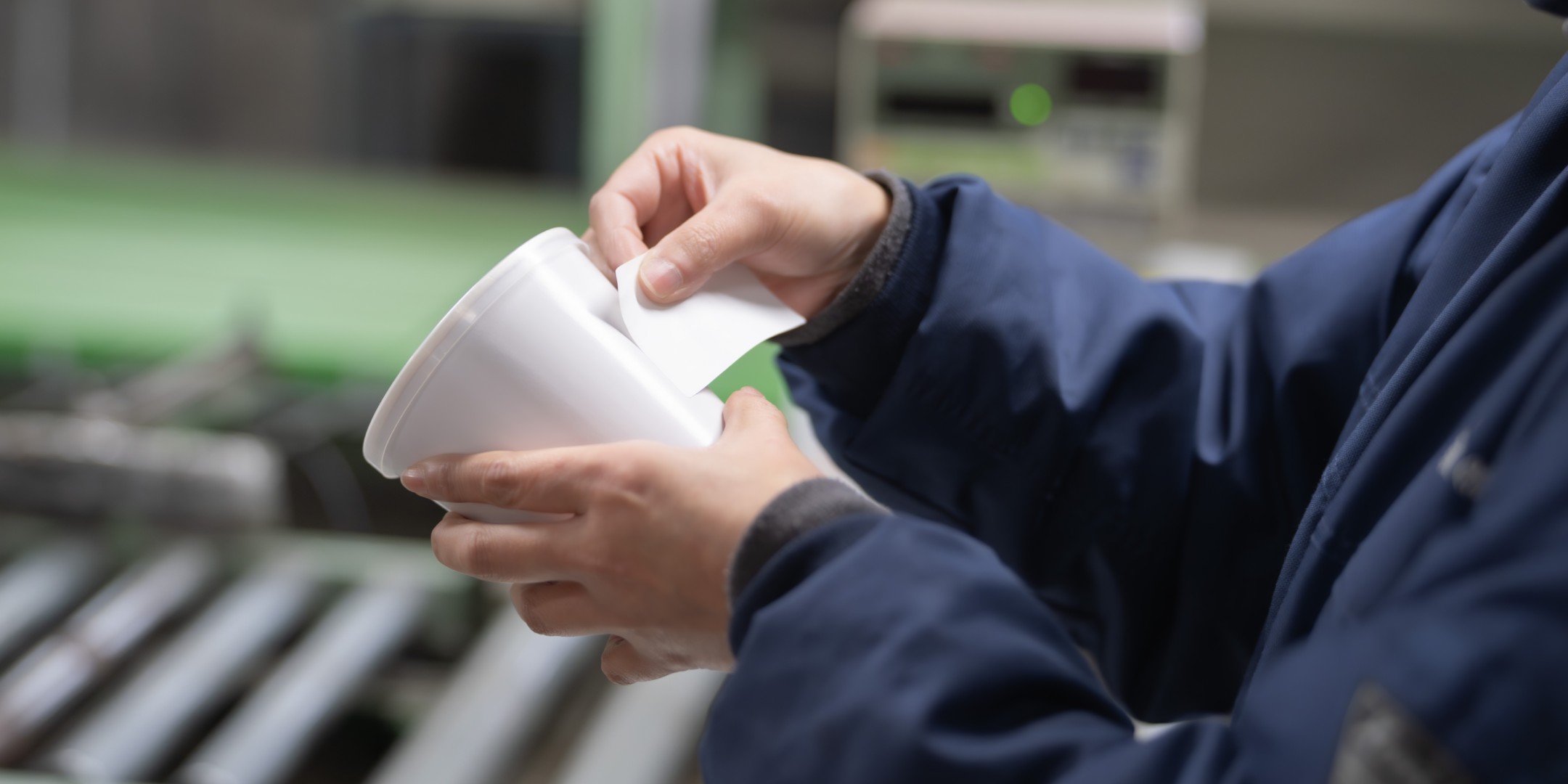 商品を店頭で目立たせるためのPOPシール(アテンションシール)を、指定された位置に手作業で貼り付ける加工です。「新商品」「期間限定」「キャンペーン」などの訴求シールを正確に貼ることで、店頭での視認性を高めます。